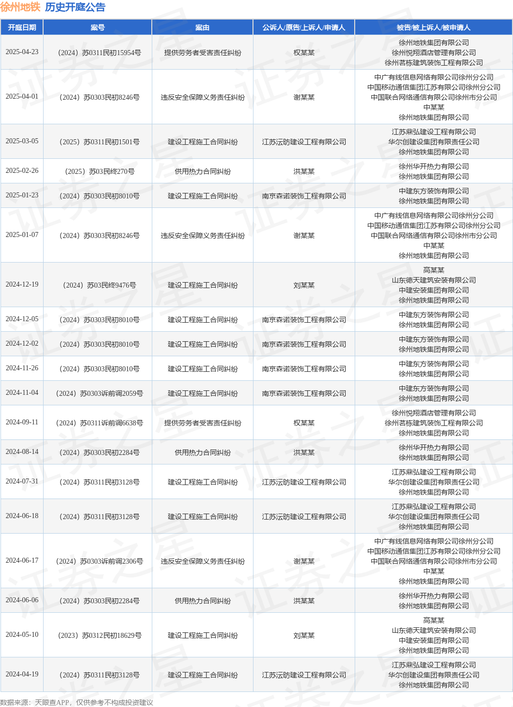 本站消息,根据天眼查APP显示,近日公布了一则徐州地铁集团有限公司作为被告/被上诉人的开庭公告,详细内容如下: